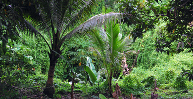 A major factor that determines the current condition of terrestrial environments on Guam is natural and anthropogenic disturbance. Windthrow (uprooting and breaking of trees by wind) and defoliation (loss of leaves) by typhoons periodically damage forests and keep vegetation patterns in a state of flux due to changing light, moisture, and nutrient levels. Anthropogenic disturbance has more permanent effects. A large part of the land area of northern Guam changed recently from forest to secondary vegetation and urban vegetation and buildups. Terrestrial environments are extremely vulnerable to clearing for construction and expansion of residential, commercial, and military facilities. For that reason, an ever-increasing proportion of Guam’s natural land cover is being replaced by disturbed vegetation, managed landscapes, and urban areas.