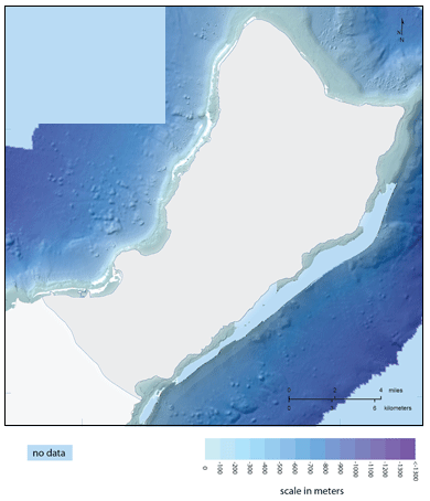 About this map:This map shows the depth of the seafloor around northern Guam. Data from different surveys were merged and then classified by depth intervals. The classified bathymetry layer was combined with hypsometric tinted shaded relief. The map is a compilation of several geospatial datasets, including 2001 SHOALS LiDAR and 2007 LiDAR surveys (JALBTCX) collected by USACE and 2007 Multibeam survey by conducted by NOAA. |